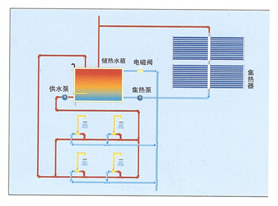 - 本系統中集熱器集中放置,設置滿足用戶需求容量的大型儲熱水箱,控制系統、循環(huán)裝置及其他輔助設...